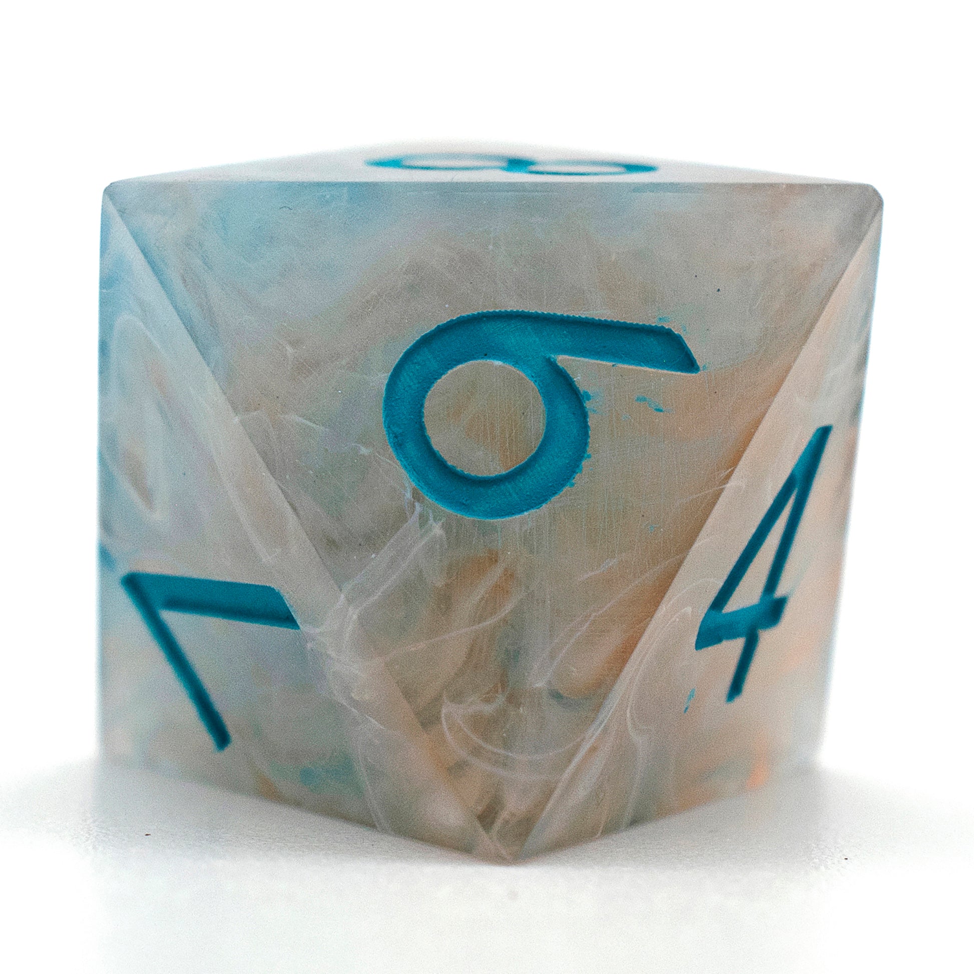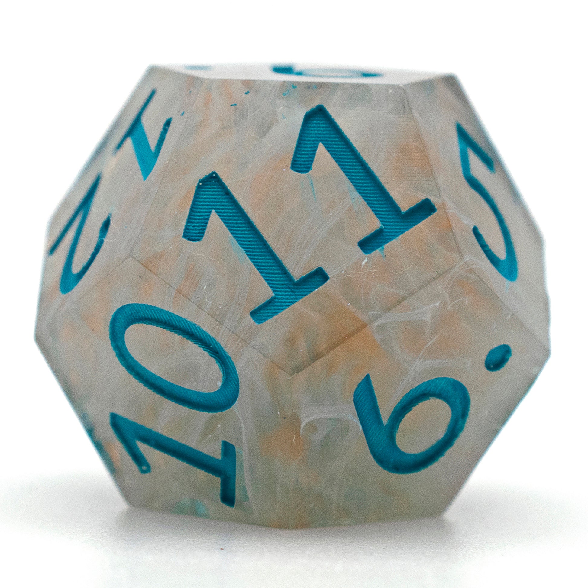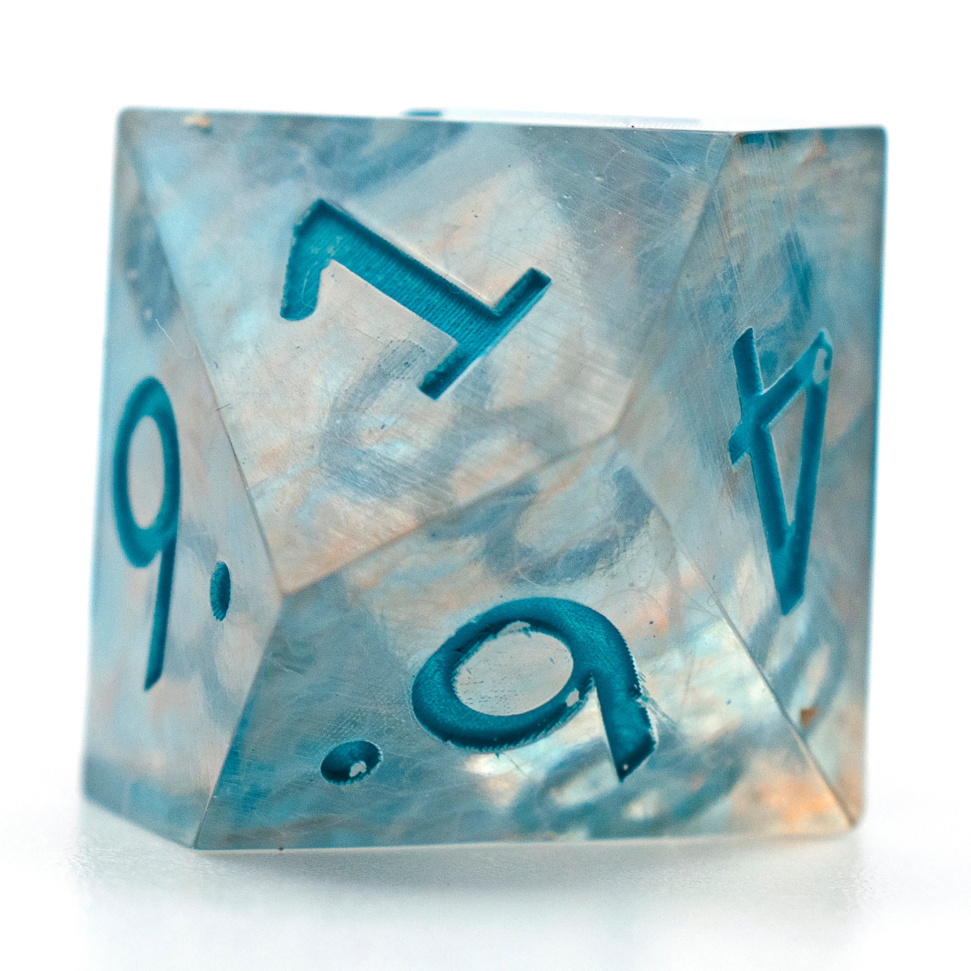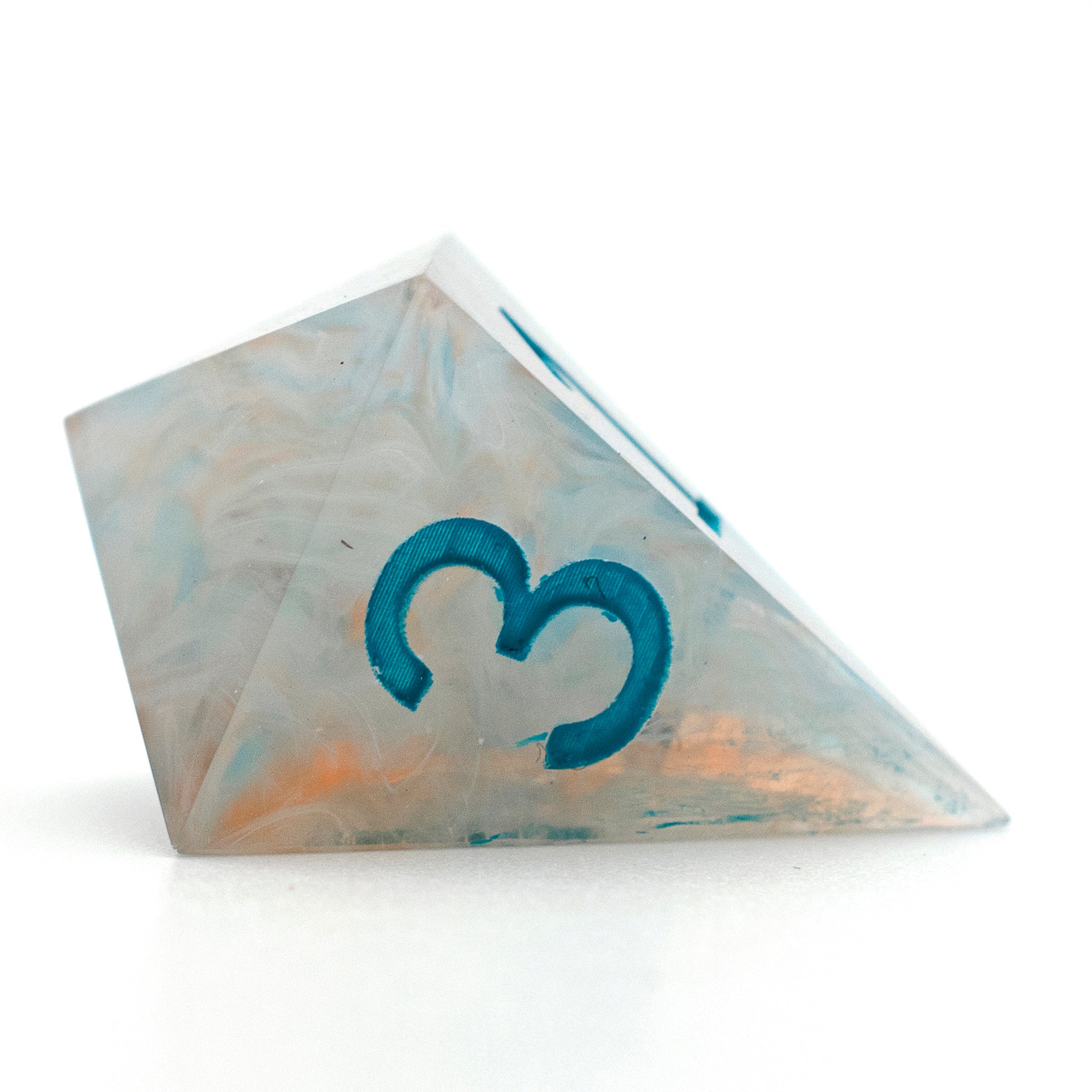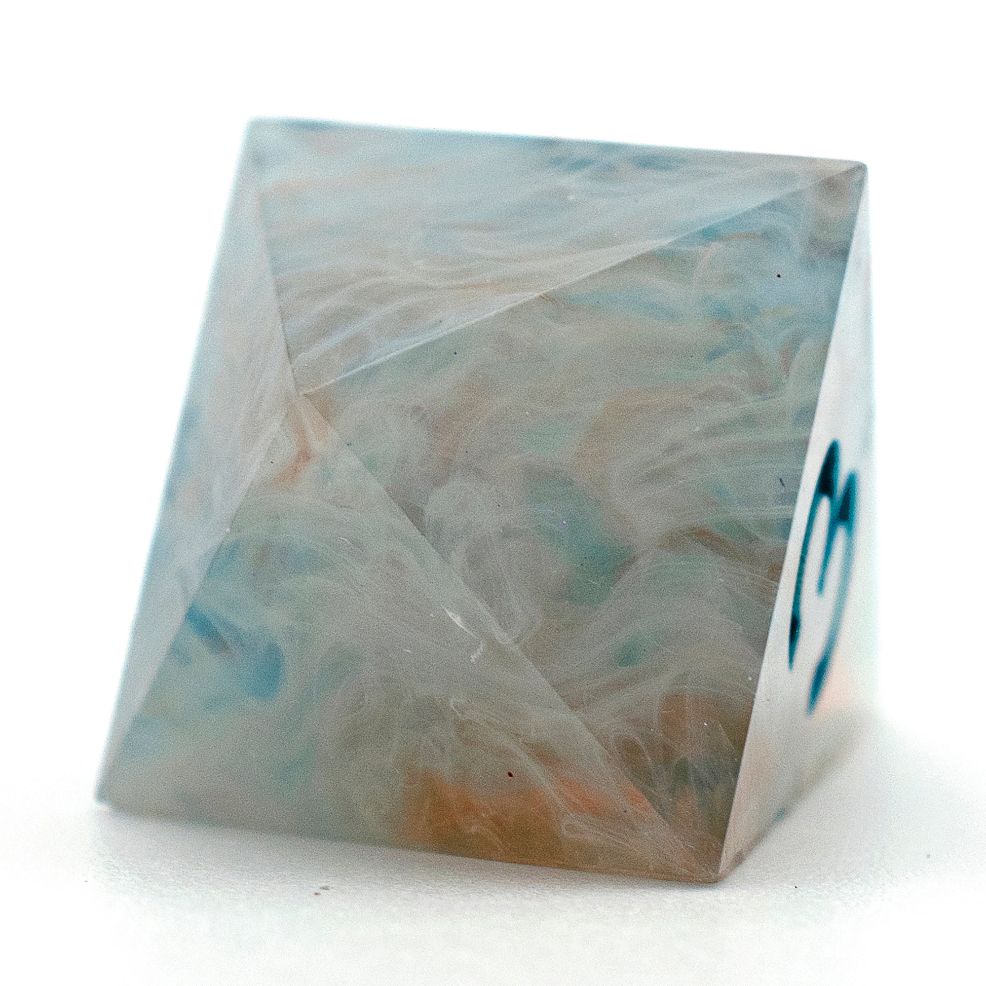 Boast swirls of blue and orange resin, these dice are imbued with an ethereal quality reminiscent of otherworldly spirits and mysterious energies.