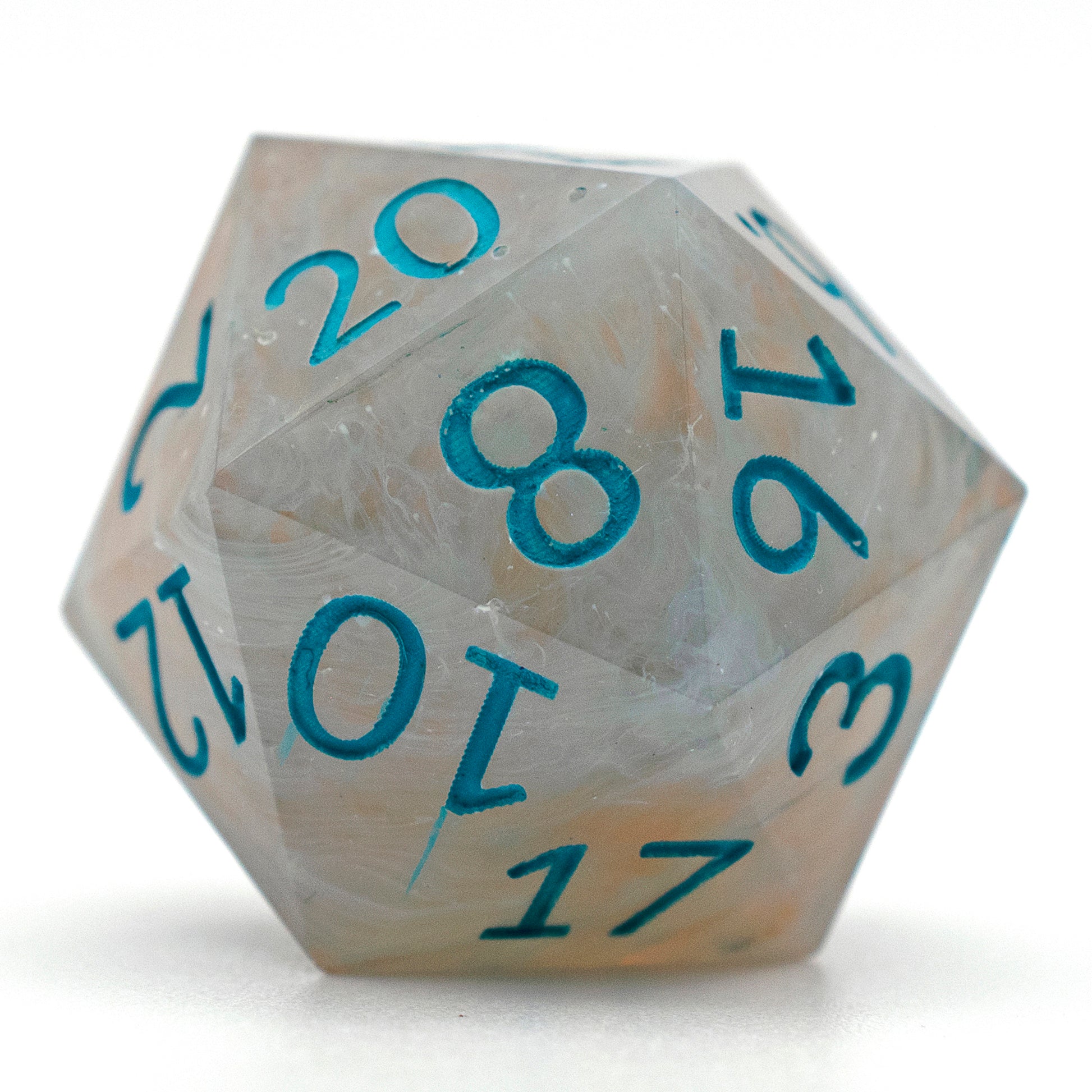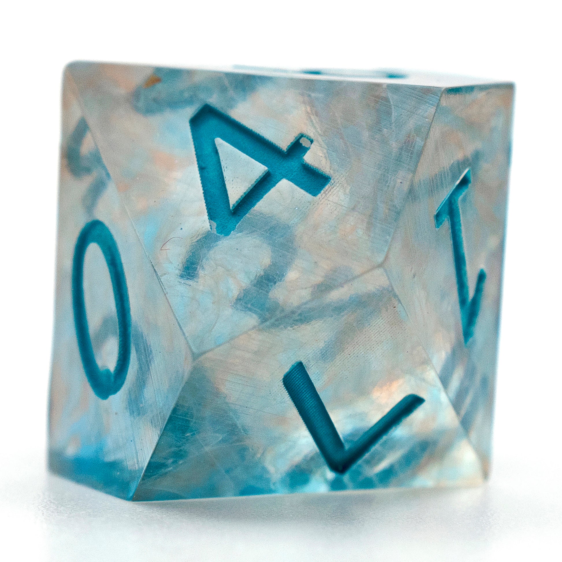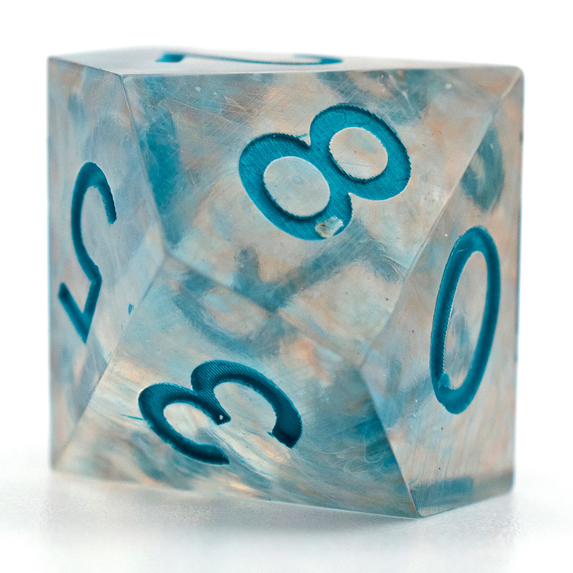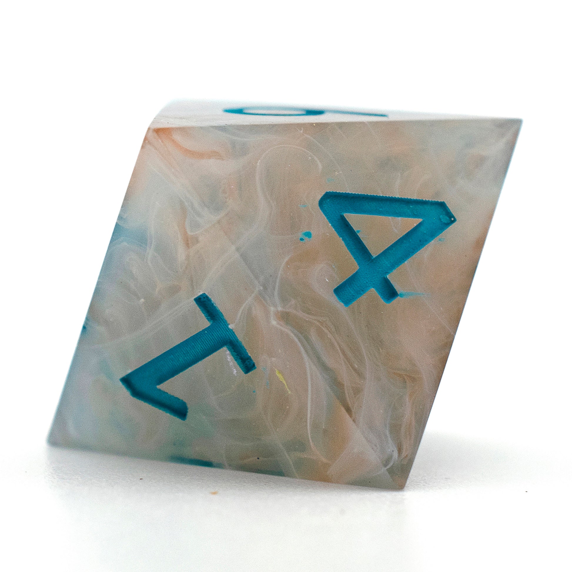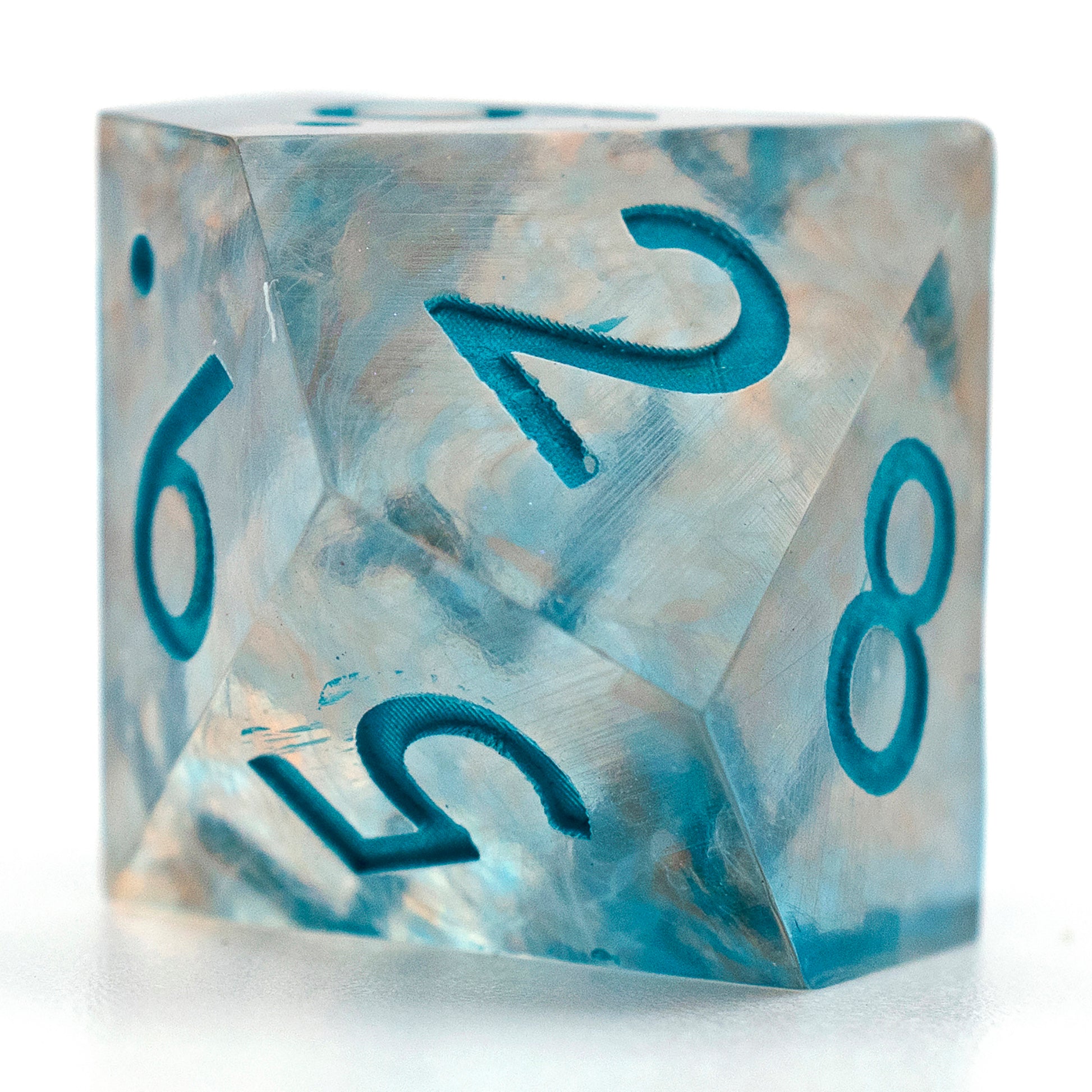 Boast swirls of blue and orange resin, these dice are imbued with an ethereal quality reminiscent of otherworldly spirits and mysterious energies.