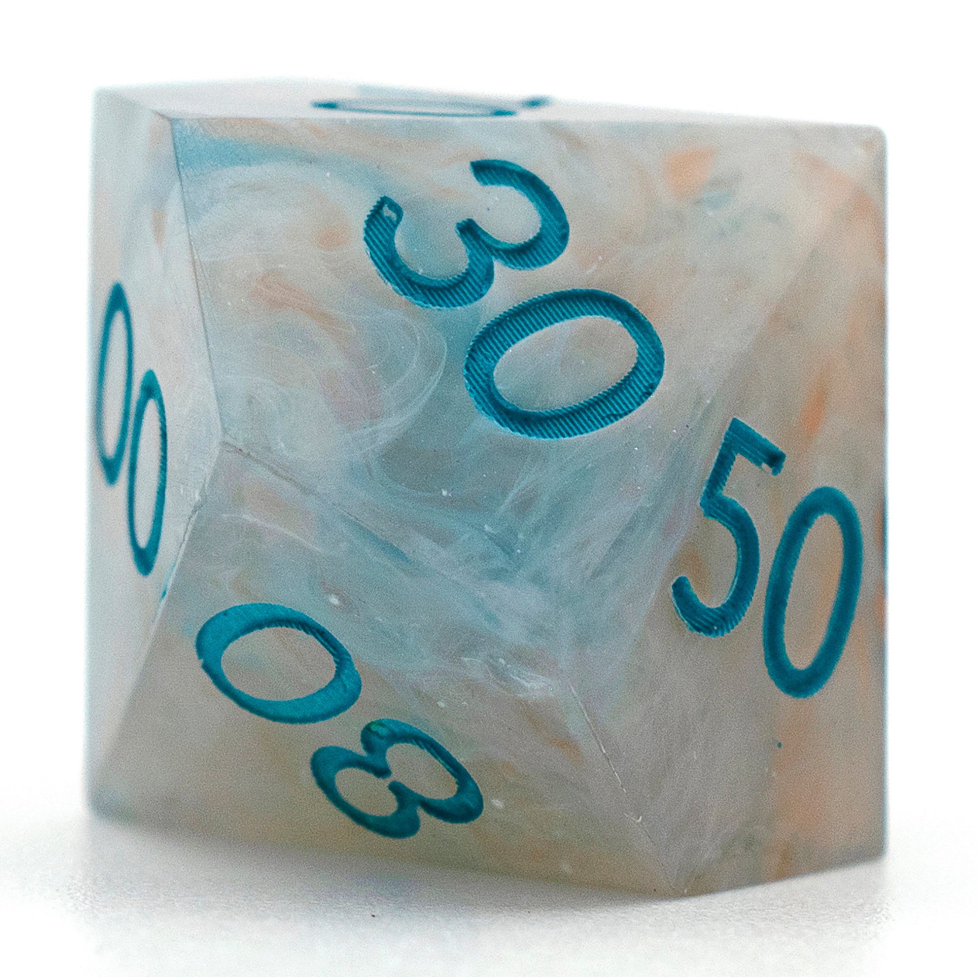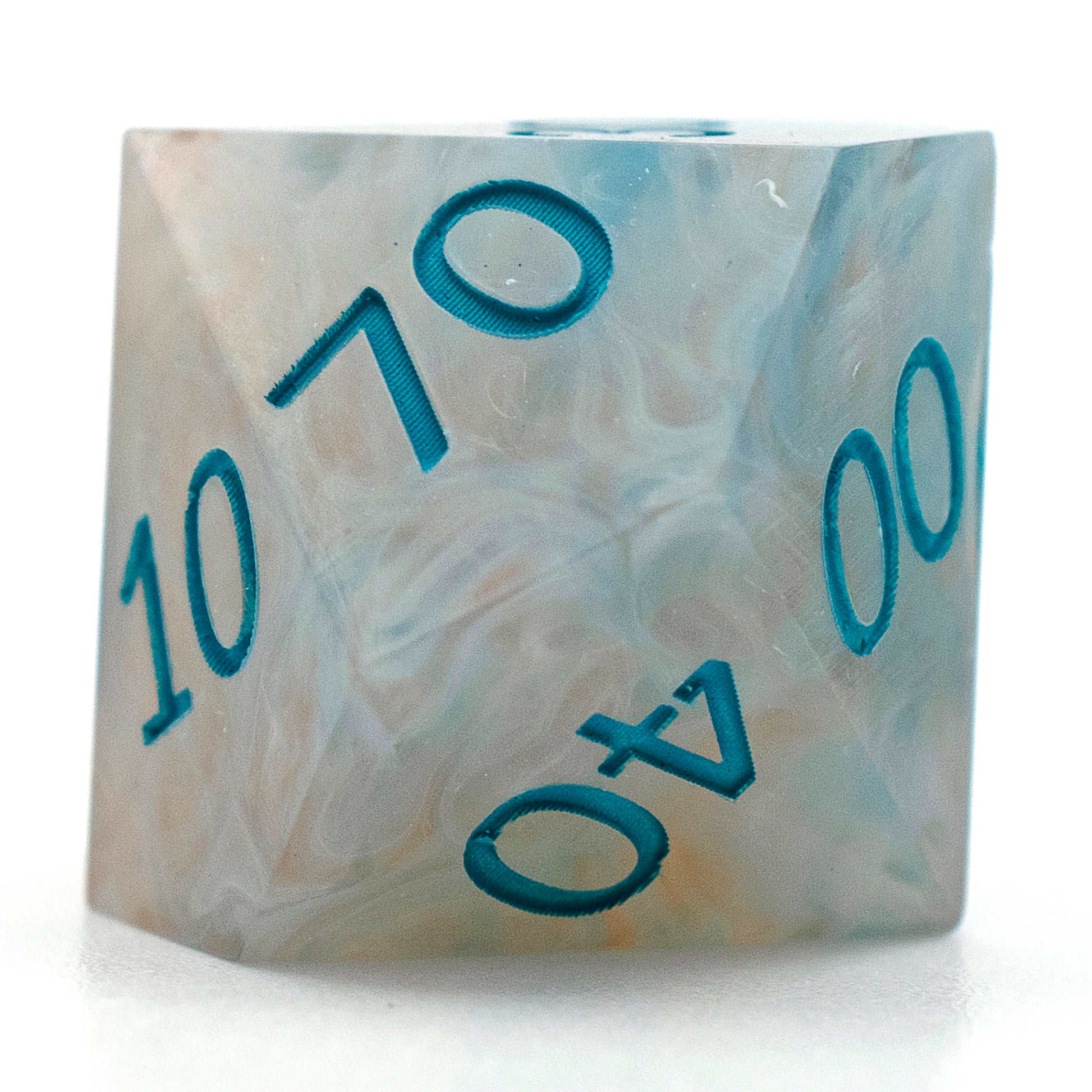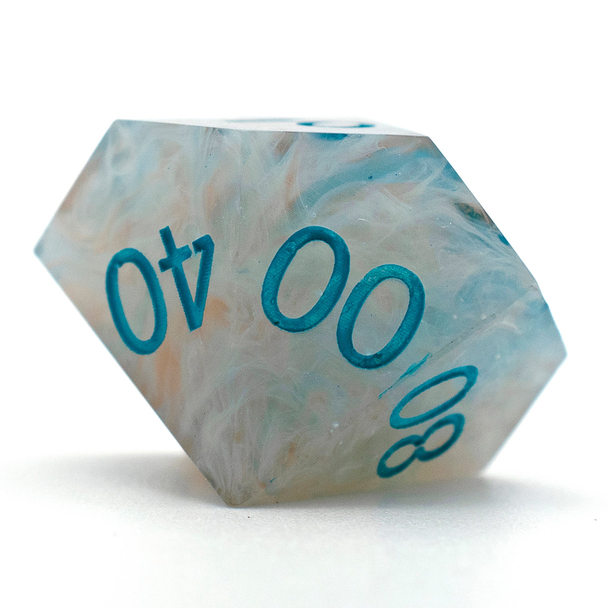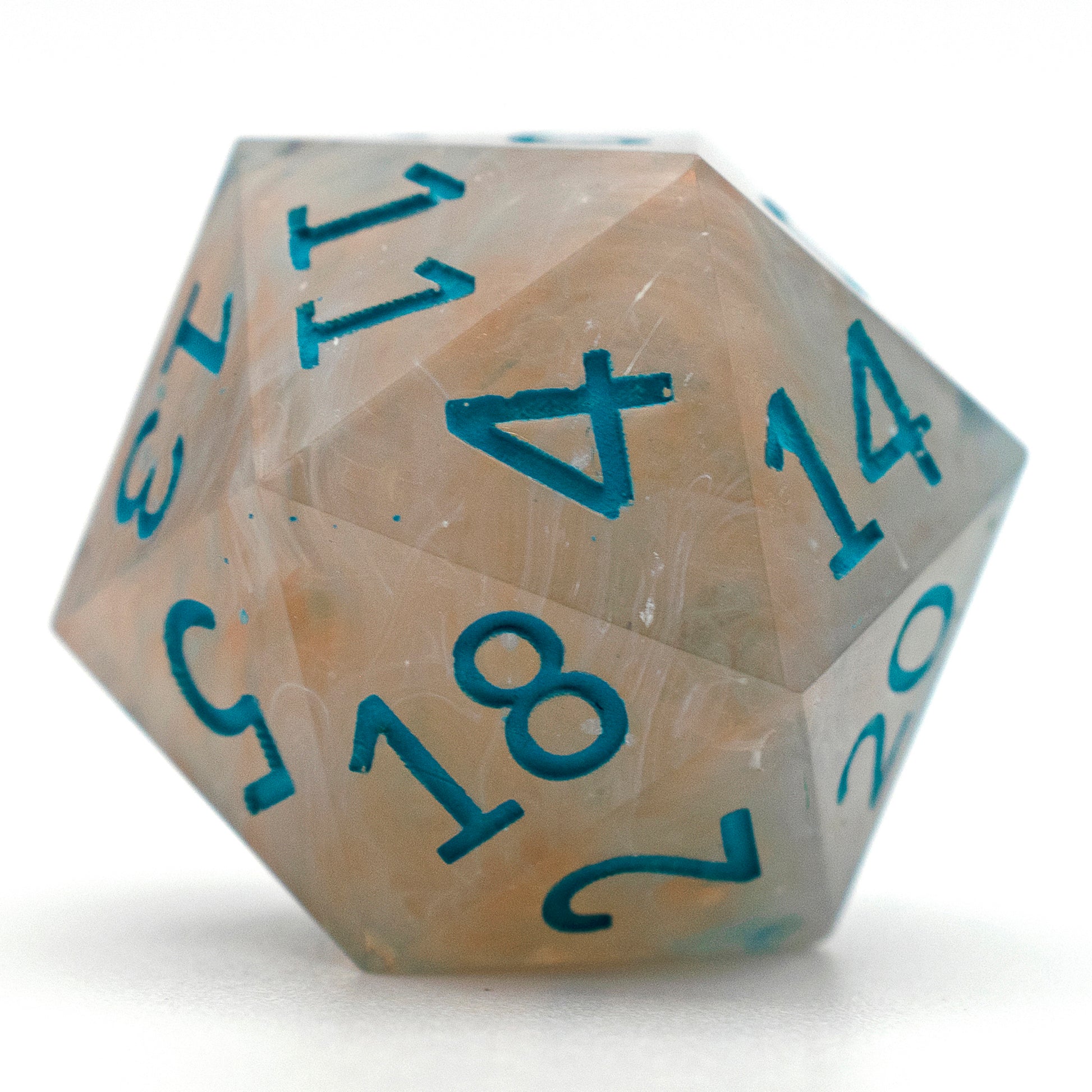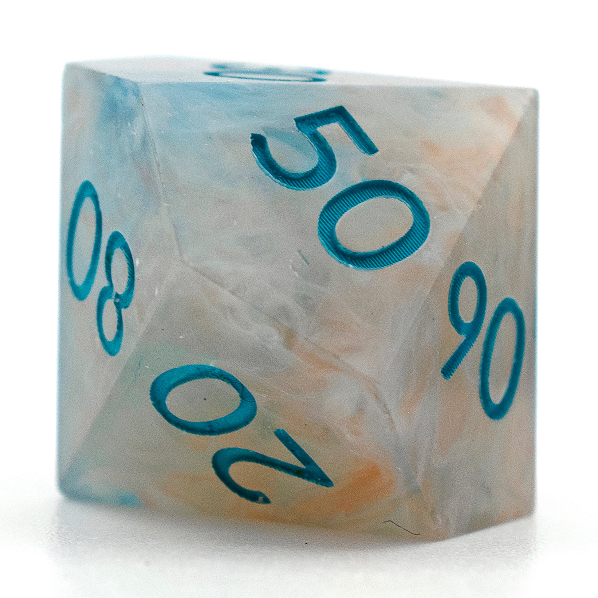 Boast swirls of blue and orange resin, these dice are imbued with an ethereal quality reminiscent of otherworldly spirits and mysterious energies.
