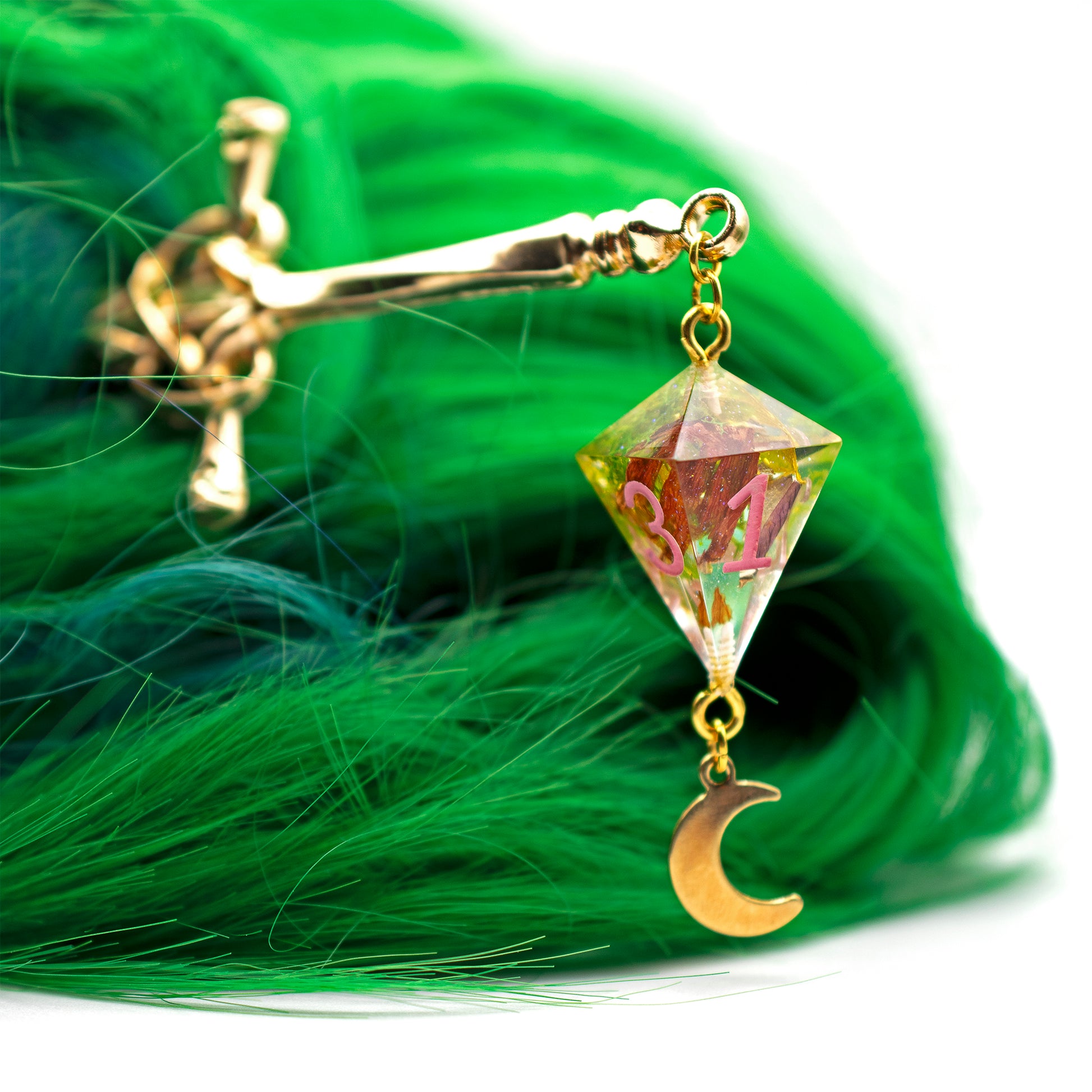 Braid your style with a touch of adventure! These handcrafted hair swords double as striking hair sticks, each forged in a sleek sword design with a surprise twist, a dangling mystery die at the pommel. Every piece comes with a randomly selected resin die, so no two are quite the same.