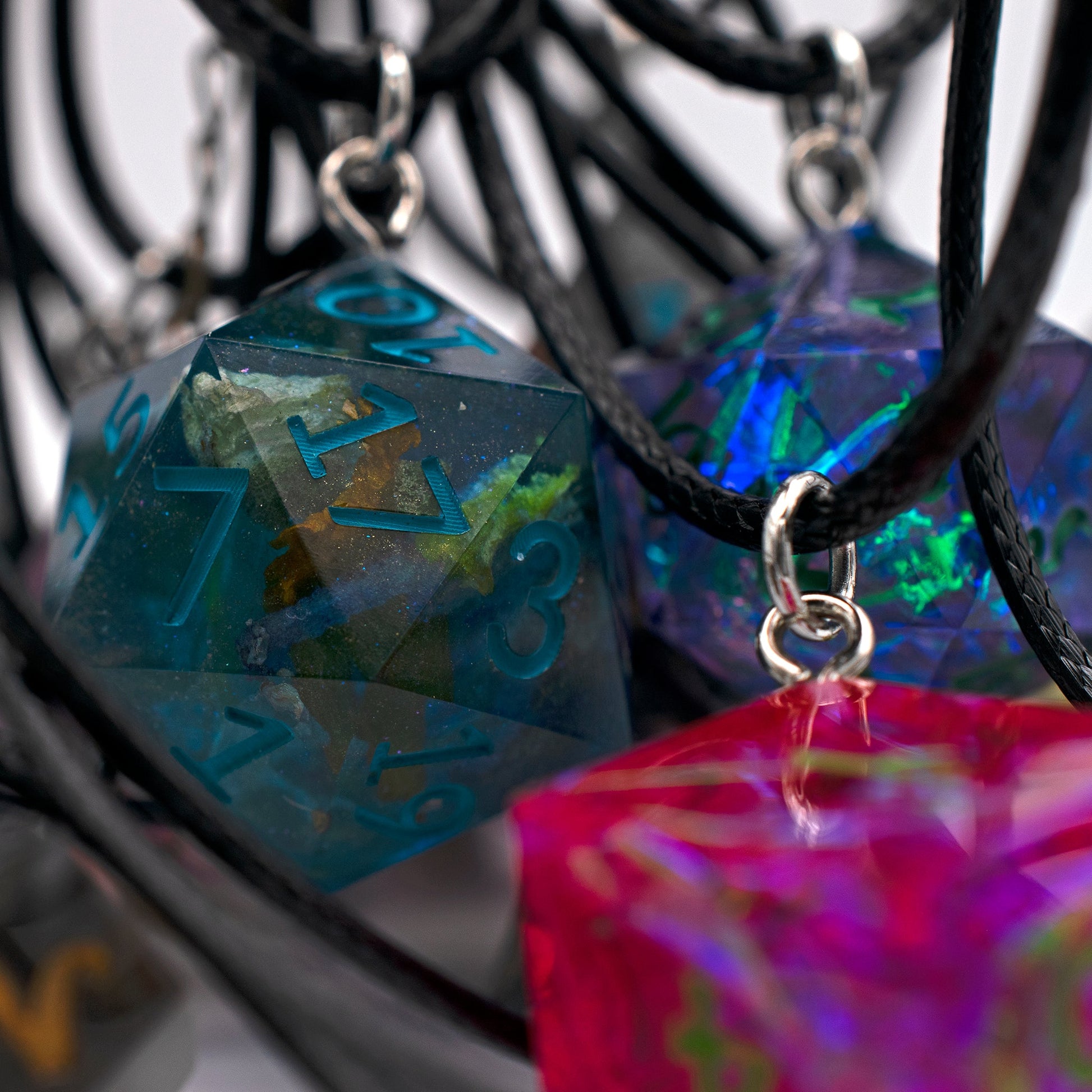 This die, polished to a gleam, hangs on an cotton necklace, with metal clasp and extender chain. This listing offers a single necklace crafted from mystery artisan dice. Our mystery dice jewelry includes both standard and mini-sized dice. Please note that we cannot guarantee specific color or size.