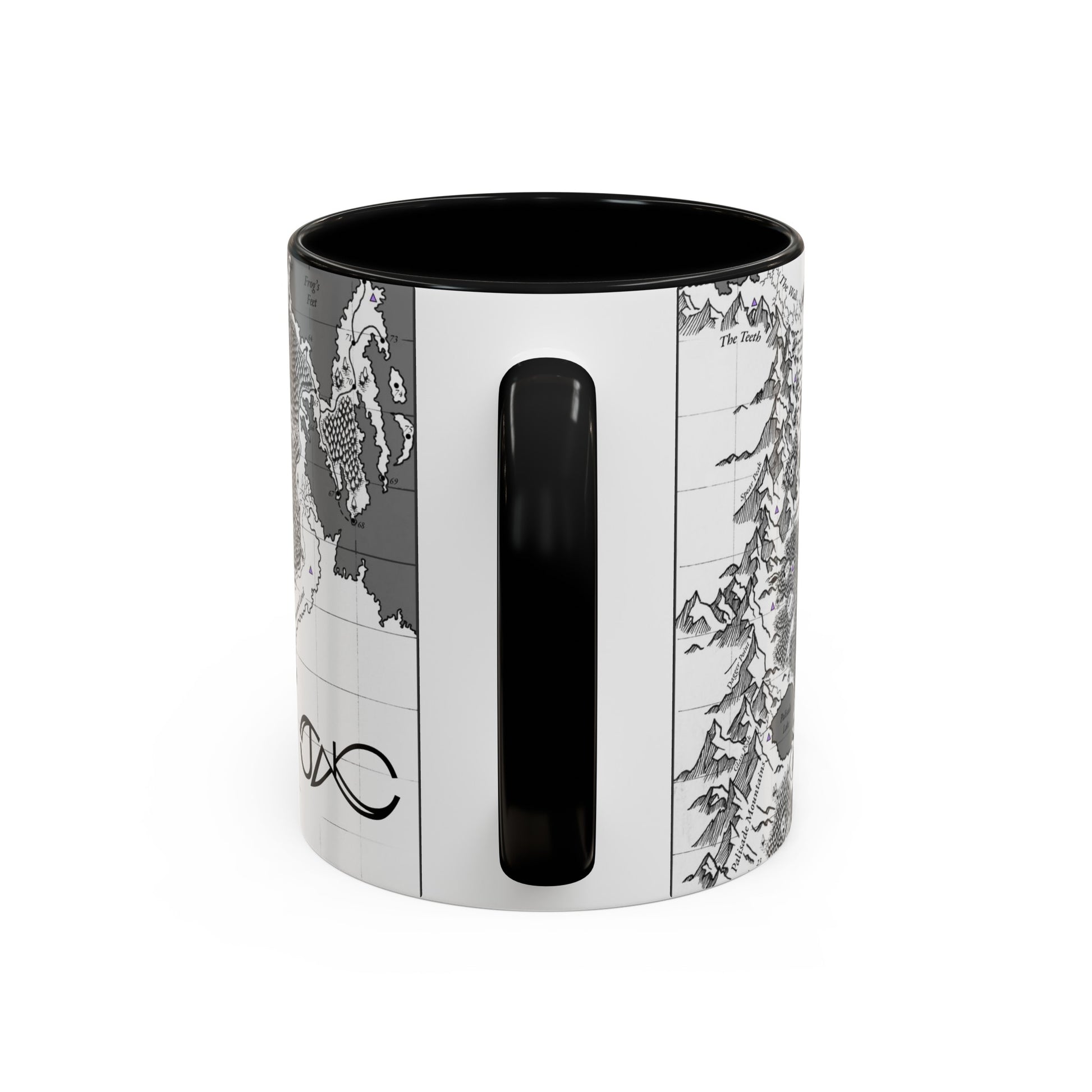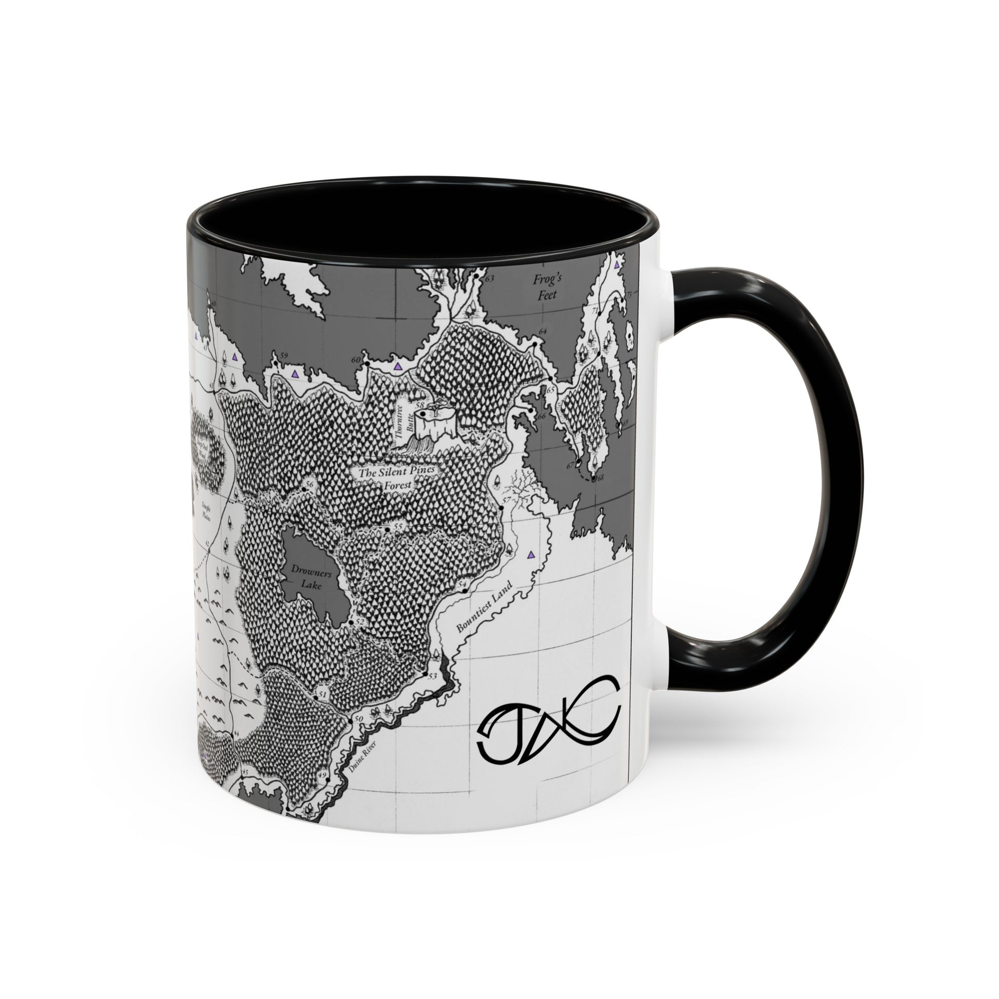 Start your day with 11oz of adventure, or bring the adventure with you to the office. Well over two hundred hours of hand drawing, along with a small blood sacrifice and many tears of frustration, birthed the map that wraps around the walls of this mug. The mug features an accented C-Handle that is comfortable to use, and the interior accent color matches the handle; choose your color to match your style; or select black, nothing wrong with a classic.